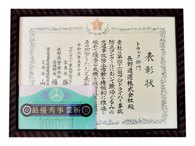 第42回プロドライバー事故防止コンクールのトラック部門で、最高の「最優秀事業所」に選ばれました。当社の受賞は10年連続になります。引き続き安全運転の取り組みにまい進いたします。